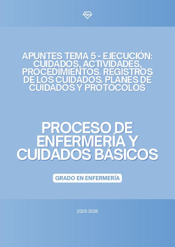 En este documento se encuentra el tema 5 de la asignatura "Proceso de Enfermería y Cuidados Básicos" de la profesora Marta López Bueno del curso académico 2025-2026