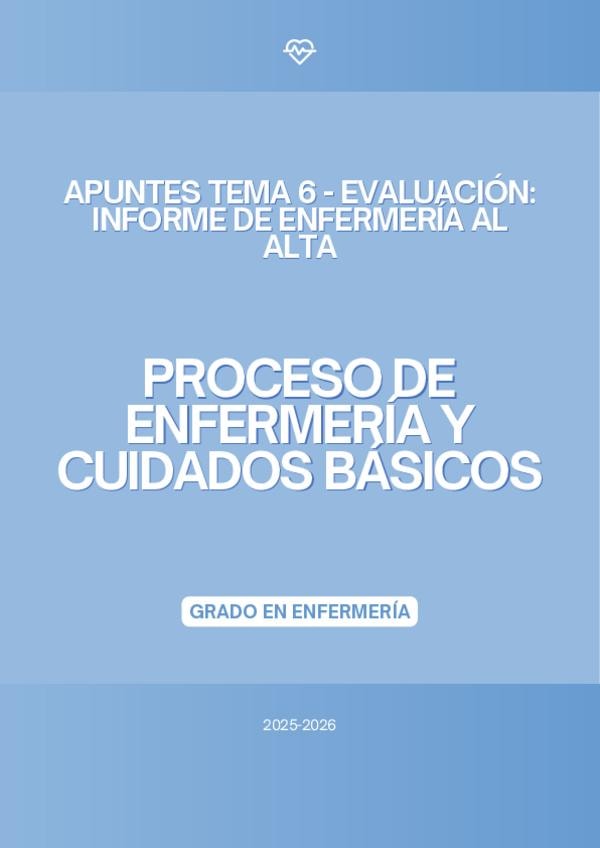En este documento se encuentra el tema 6 de la asignatura "Proceso de Enfermería y Cuidados Básicos" de la profesora Marta López Bueno del curso académico 2025-2026