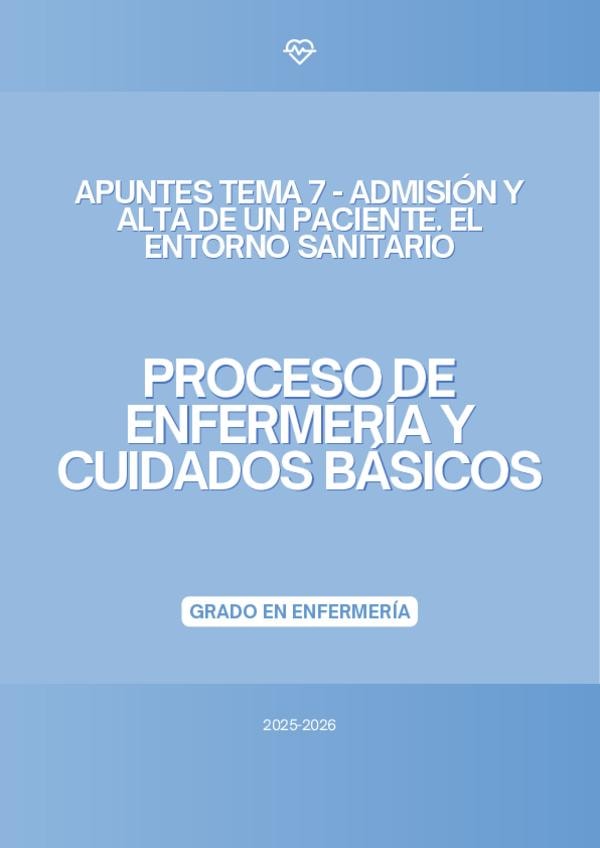 En este documento se encuentra el tema 7 de la asignatura "Proceso de Enfermería y Cuidados Básicos" de la profesora Marta López Bueno del curso académico 2025-2026