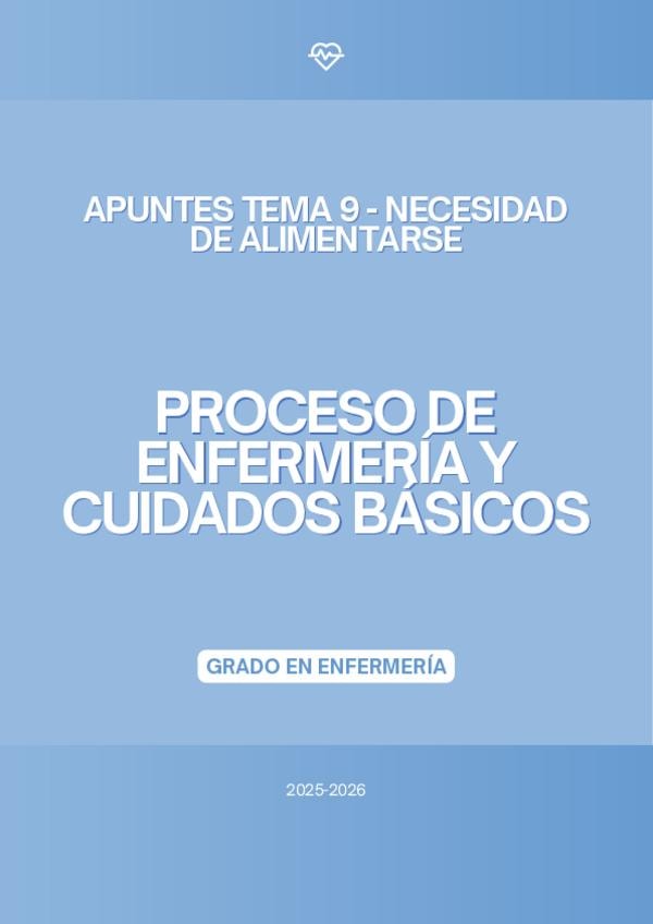 En este documento se encuentra el tema 9 de la asignatura "Proceso de Enfermería y Cuidados Básicos" de Marina Palma Ortega del curso 2025-2026