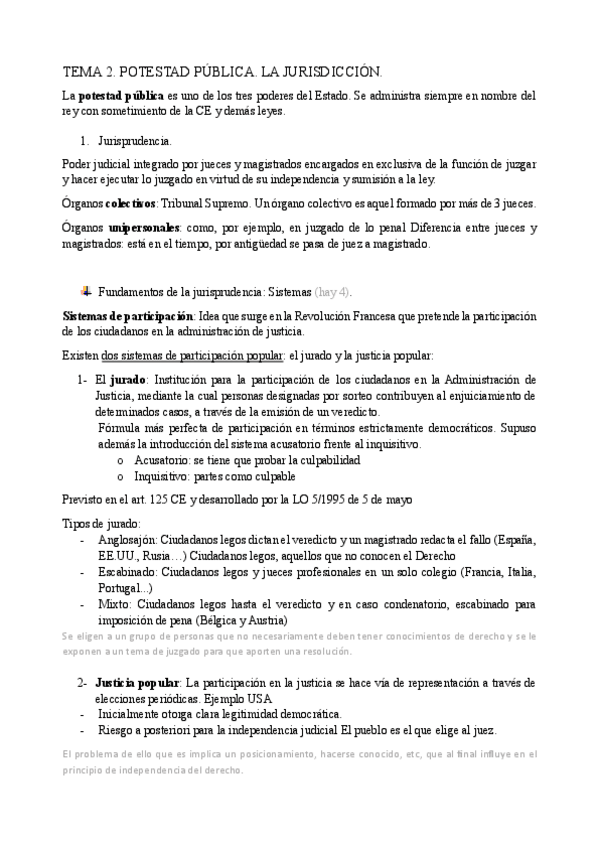 He publicado nuevos apuntes de 2º Proceso Judicial, Estructura Jurisdiccional y Organización Judicial: TEMA-2.pdf