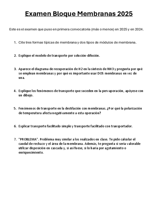 He publicado nuevos examenes de 1º Procesos Avanzados de Separación: Examen-Membranas-1o-Convo-2025.pdf