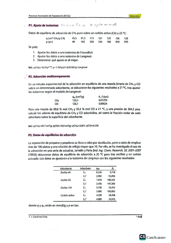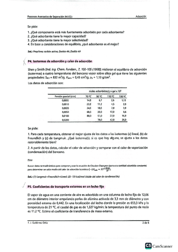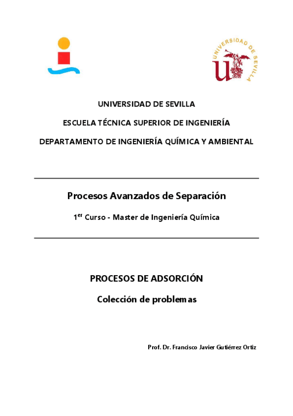 He publicado nuevos ejercicios de 1º Procesos Avanzados de Separación: Adsorción