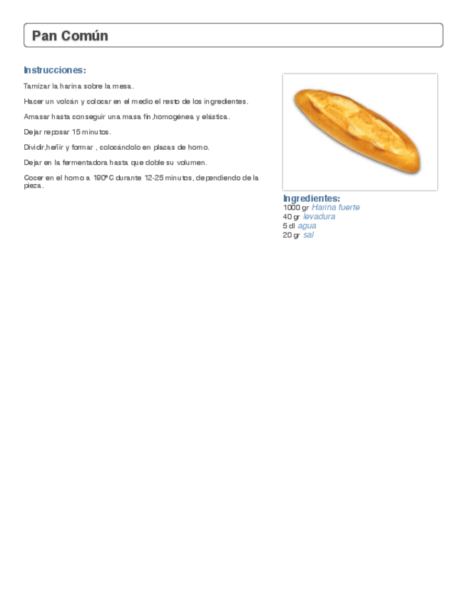 He publicado nuevos apuntes de Procesos básicos de pastelería y repostería: Pan-Comun-Receta.pdf
