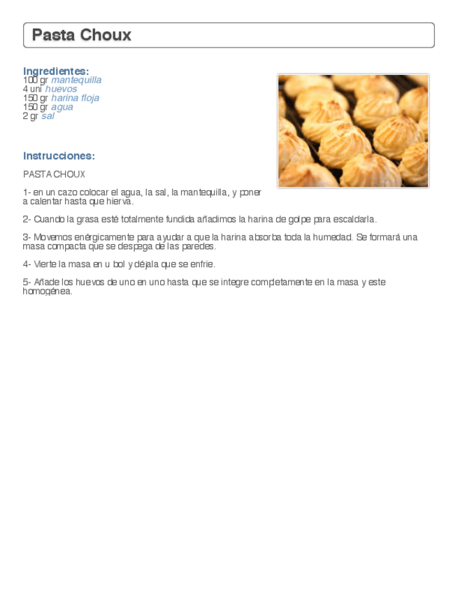 He publicado nuevos apuntes de Procesos básicos de pastelería y repostería: Pasta-Choux-Receta.pdf