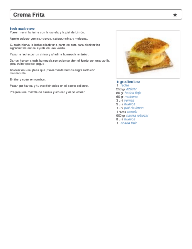 He publicado nuevos apuntes de Procesos básicos de pastelería y repostería: Leche-frita-Receta.pdf