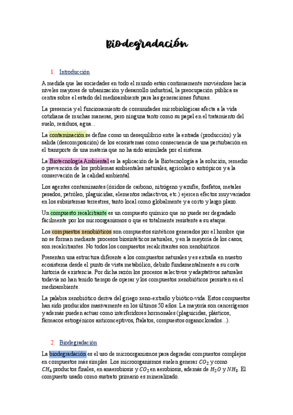 He publicado nuevos apuntes de 4º Procesos Biotecnológicos: Biodegradacion.pdf
