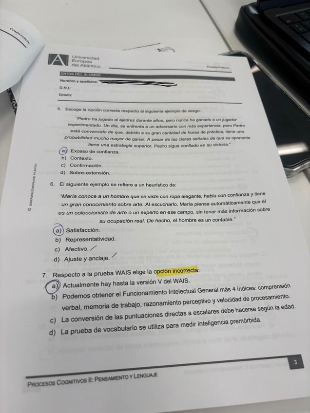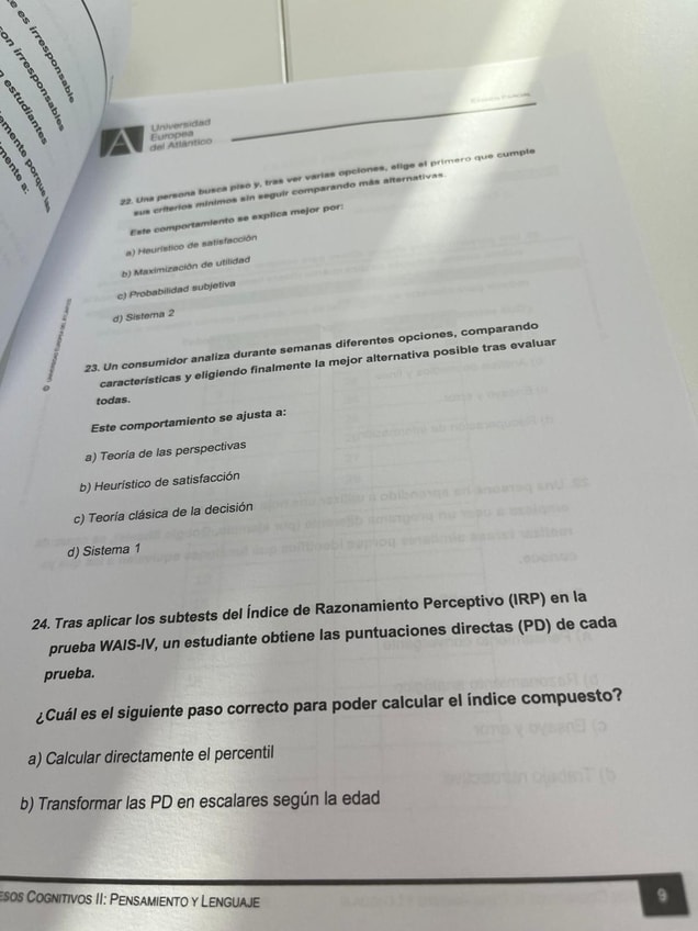 He publicado nuevos examenes de 2º Procesos Cognitivos: Pensamiento y Lenguaje: Parcial procesos II 2025