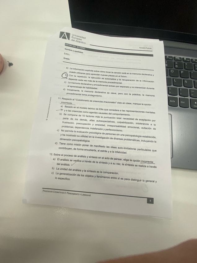 He publicado nuevos examenes de 2º Procesos Cognitivos: Pensamiento y Lenguaje: PARCIAL PROCESOS ll