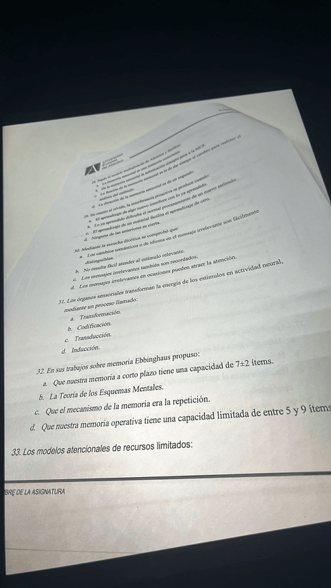 He publicado nuevos apuntes de 2º Procesos Cognitivos: Percepción, Atención y Memoria: Examen Procesos Cognitivos 1