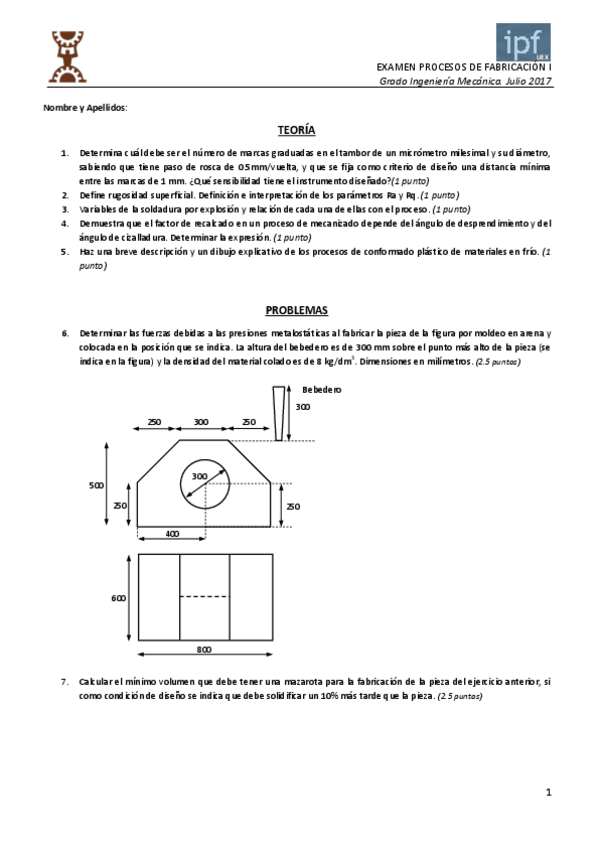 He publicado nuevos ejercicios de 3º Procesos de Fabricación I: Ejercicios RESUELTOS clase.pdf