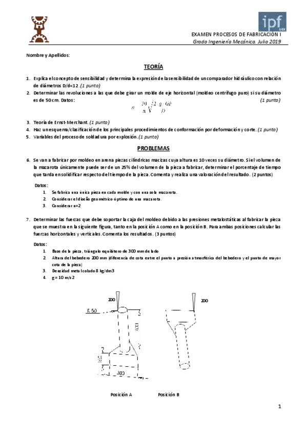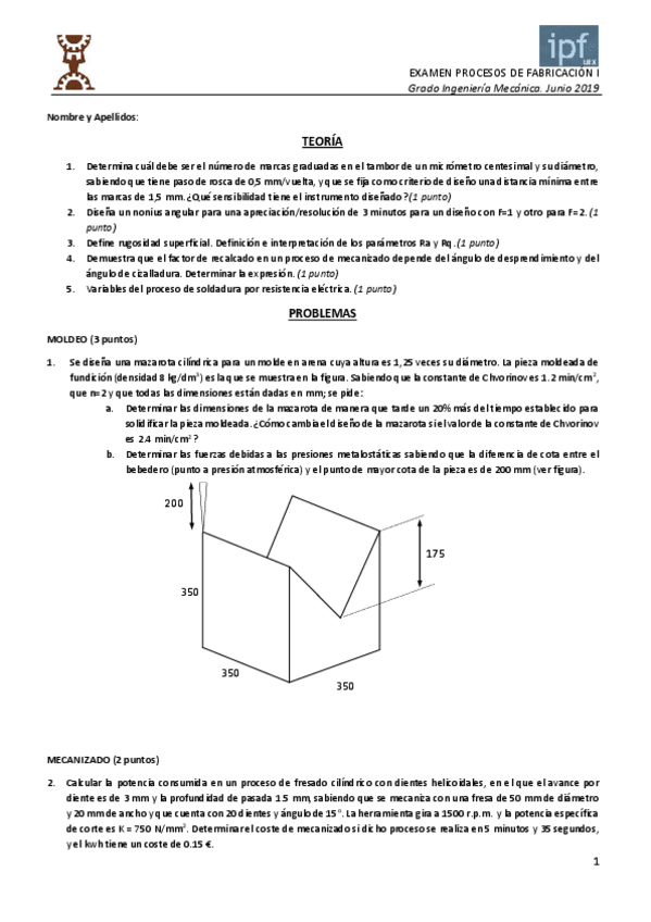 He publicado nuevos ejercicios de 3º Procesos de Fabricación I: Formulario Examen Problemas.pdf