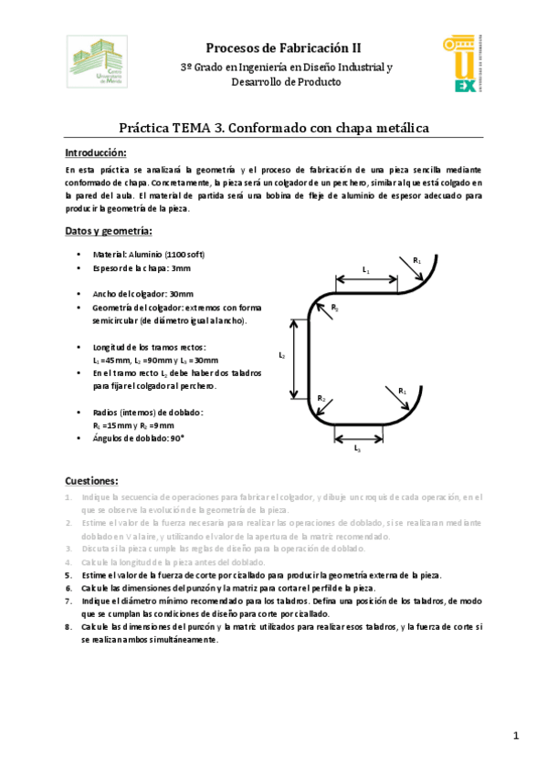 He publicado nuevos ejercicios de 3º Procesos de Fabricación II: Problema-1-Aula.pdf
