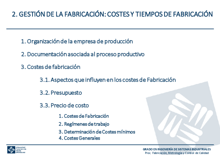 He publicado nuevos apuntes de 4º Procesos de Fabricación, Metrología y Control de Calidad: PFMCCESB1-T2Gestion-Fabricacion-costes-tiempos.pdf