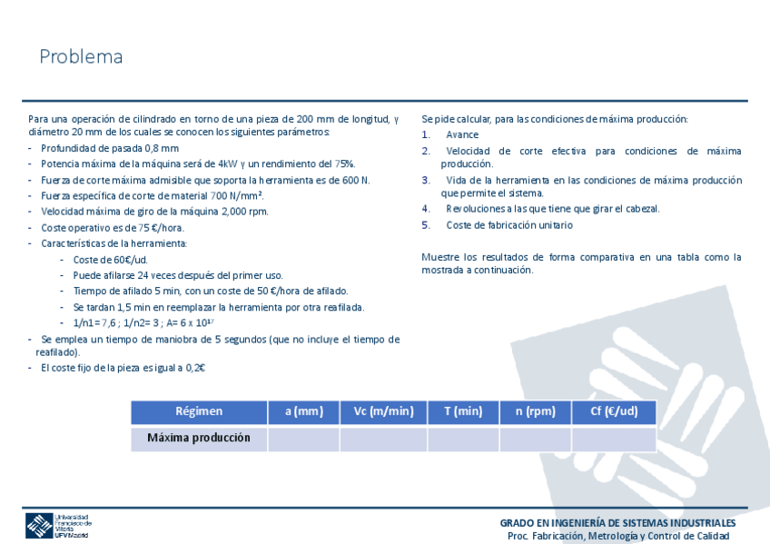 He publicado nuevos ejercicios de 4º Procesos de Fabricación, Metrología y Control de Calidad: Entregable2ProcesosDeFabricacion.pdf