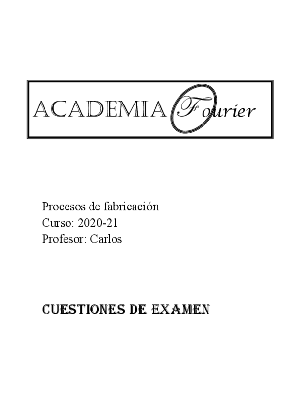 Exámenes procesos de fabricación