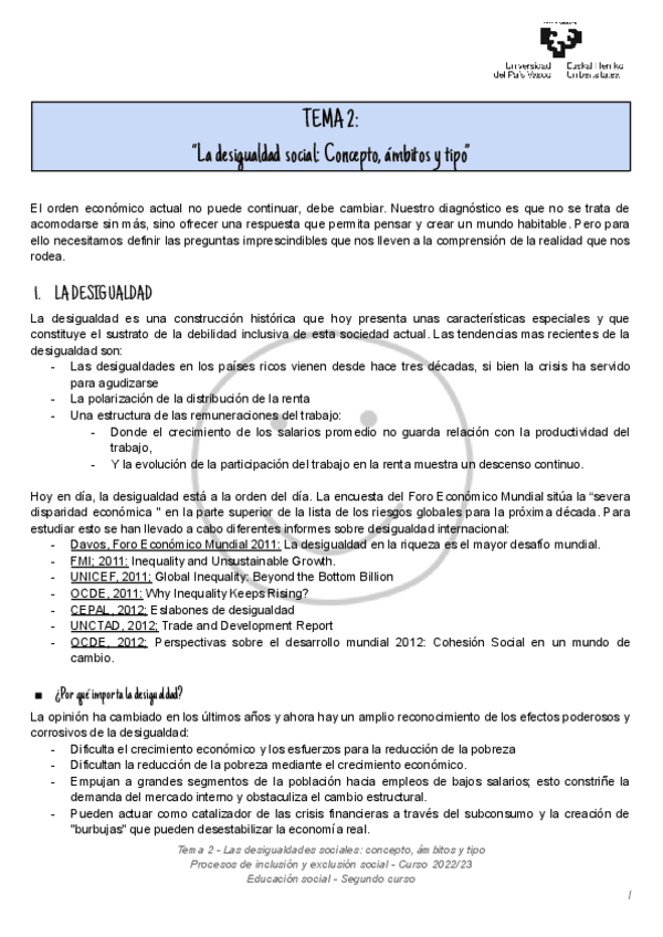 He publicado nuevos apuntes de 2º Procesos de Inclusión y Exclusión: Tema 2 - Las desigualdades sociales. Concepto, ambitos y tipo.pdf
