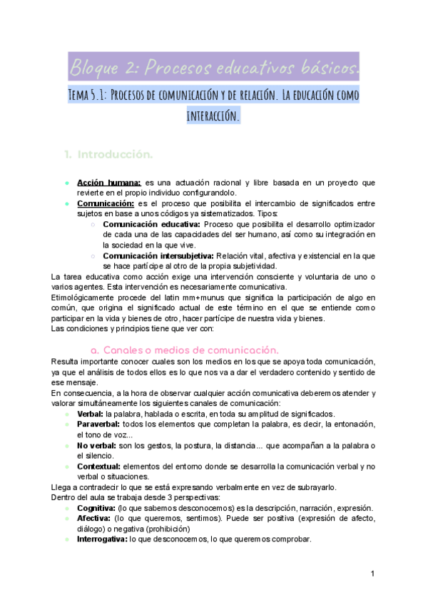 Tema procesos de comunicación y de relación. La educación como interacción