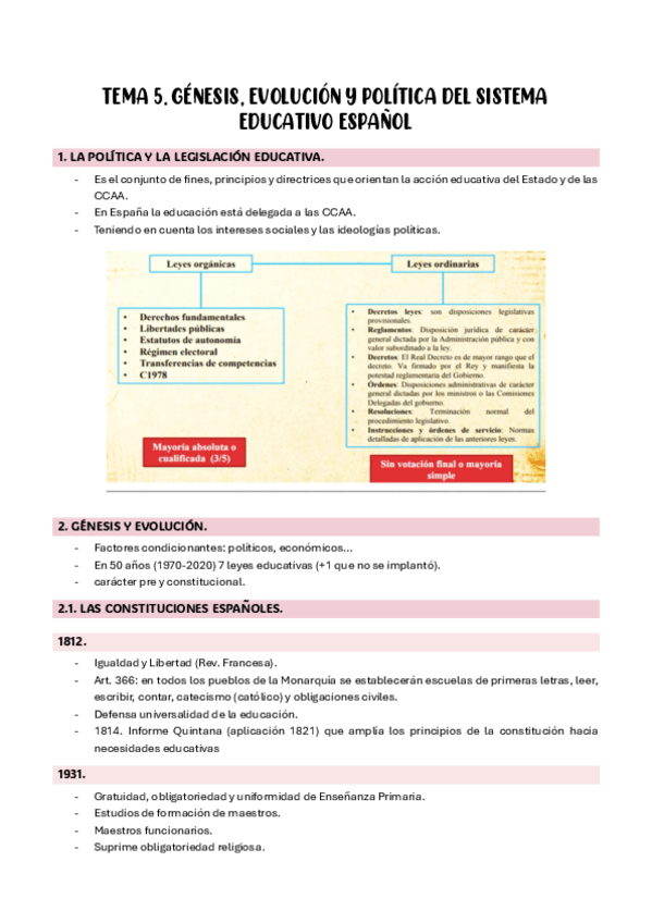 TEMA 5. GÉNESIS, EVOLUCIÓN Y POLÍTICA DEL SISTEMA EDUCATIVO ESPAÑOL CURSO 2024/25 PROFESORA: MARIA JOSÉ SERRANO FACULTAD DE CIENCIAS DE LA EDUCACIÓN DE ZAMORA