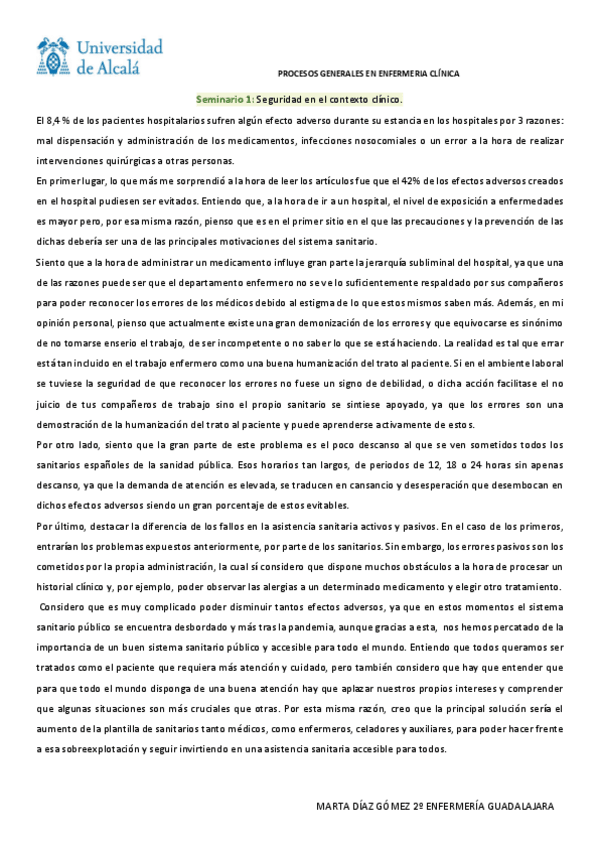 He publicado nuevos trabajos de 2º PROCESOS GENERALES EN ENFERMERÍA CLÍNICA: Seminario-1-Seguridad-en-el-contexto-clinico.pdf