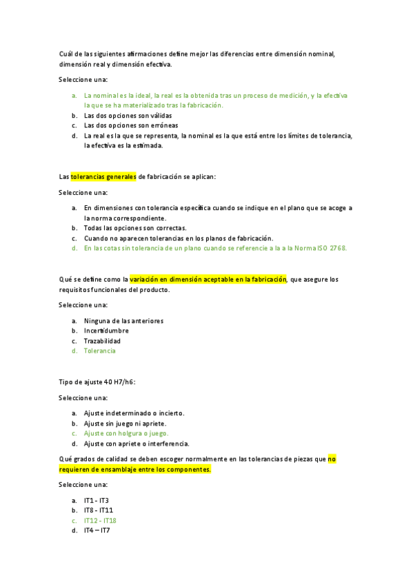 TOLERACIAS PREGUNTAS POR BLOQUES
