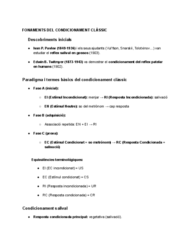 Temes 1-2-3-4-5-6 (Ampliats amb Manual Domjan) PRIMER PARCIAL