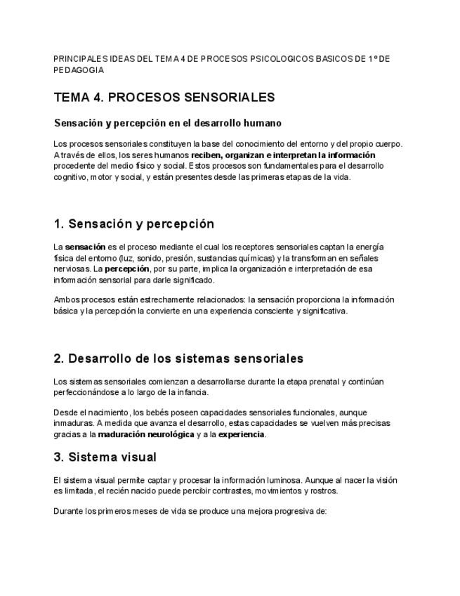 Tema 4 que es el tema 1 de Procesos Psicologicos Básicos de 1º de Pedagogia