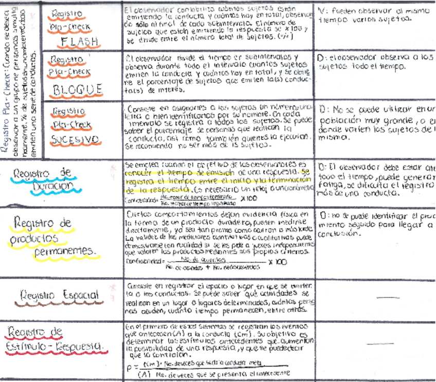 Cuadro comparativo de tipos de registros, para psicólogos.