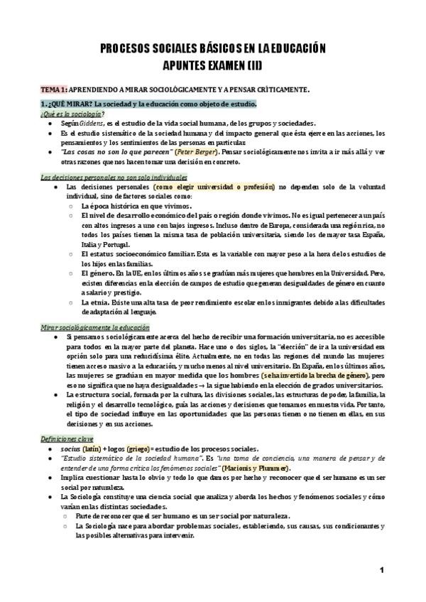 He publicado nuevos apuntes de 1º Procesos Sociales Básicos en la Educación: Apuntes-examen.pdf