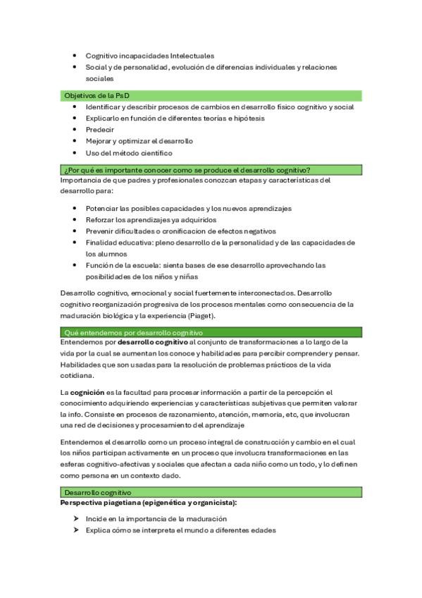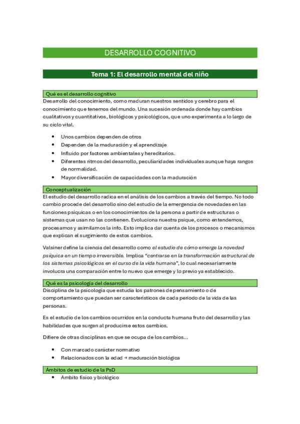 Apuntes del curso 2025/2026 de Desarrollo Cognitivo (Ana Bernardo). Asignatura: Procesos y Contextos del Desarrollo.