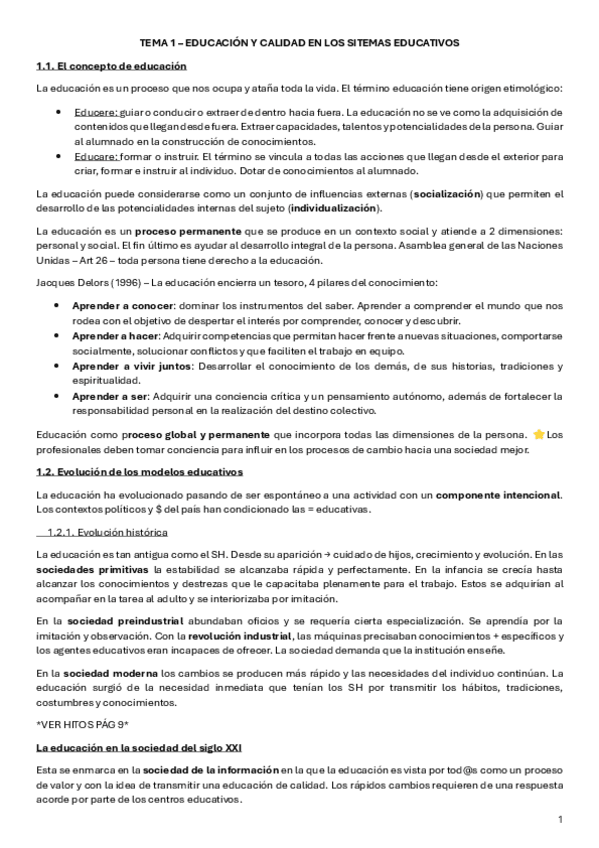 Resumen T1 - Educación y calidad en los sistemas educativos de la universidad Isabel I (Asignatura obligatoria)