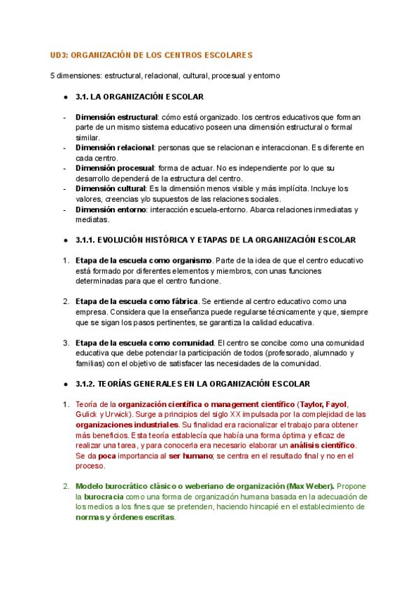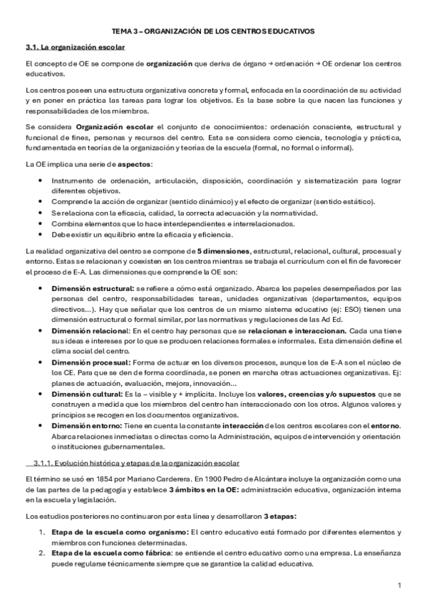 Resumen T3 - Organización de los centros educativos, de la universidad Isabel I (Asignatura obligatoria)