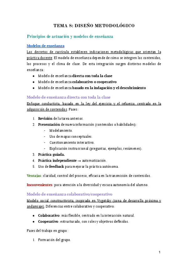 Resumen personal elaborado a partir de materiales de clase y fuentes bibliográficas de didáctica general. Contiene explicaciones originales y ejemplos adaptados