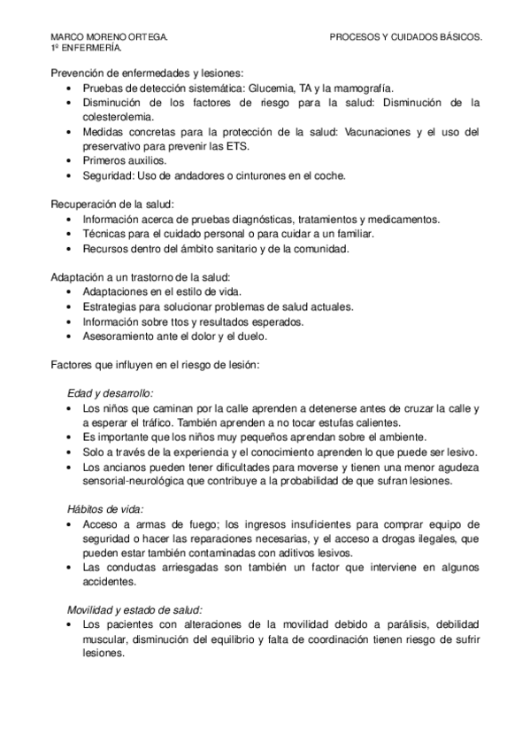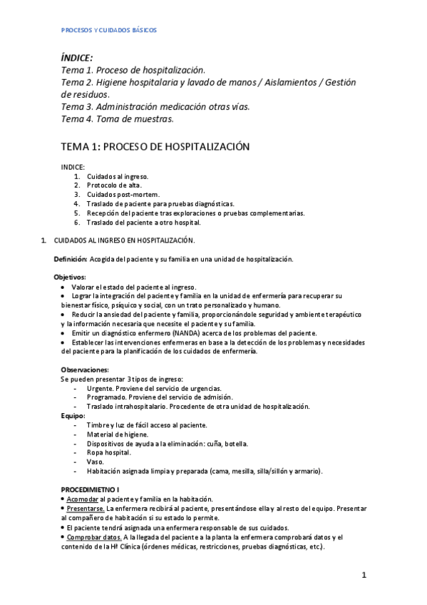 RESUMEN DE TODA LA ASIGNATURA DE PROCESOS Y CUIDADOS BÁSICOS