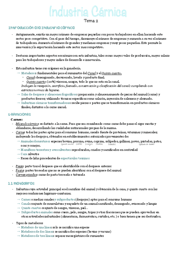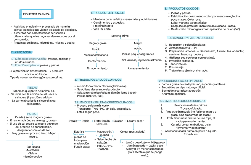 Esquemas sencillos para estudiar y entender el Tema 2 Industria Cárnica fácil.