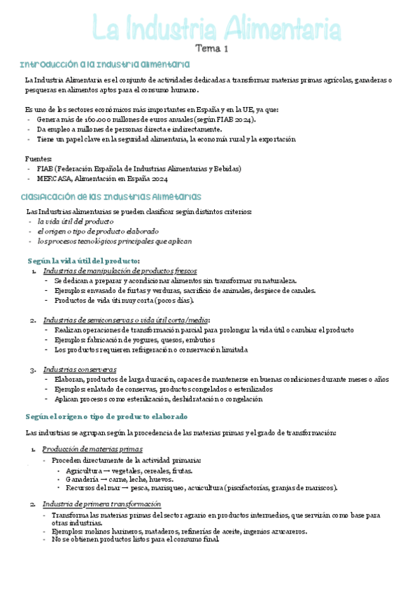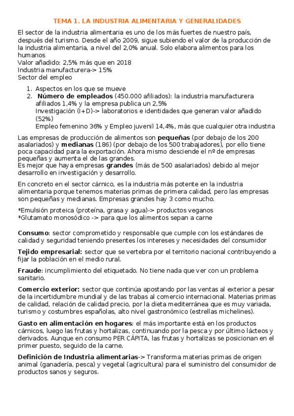 Tema 1 - La industria alimentaria