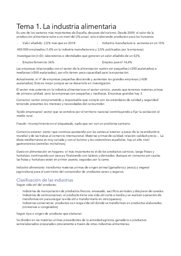 Tema 1 - La industria alimentaria