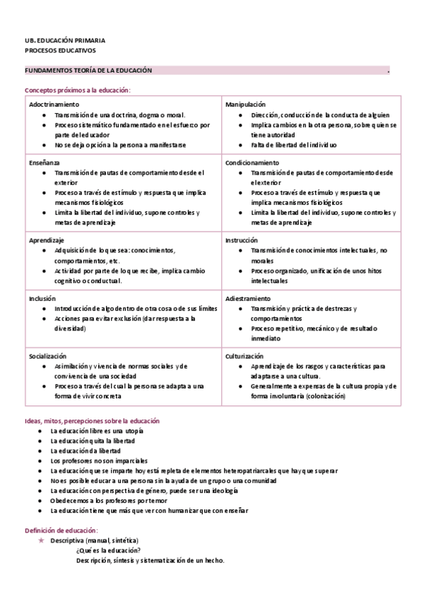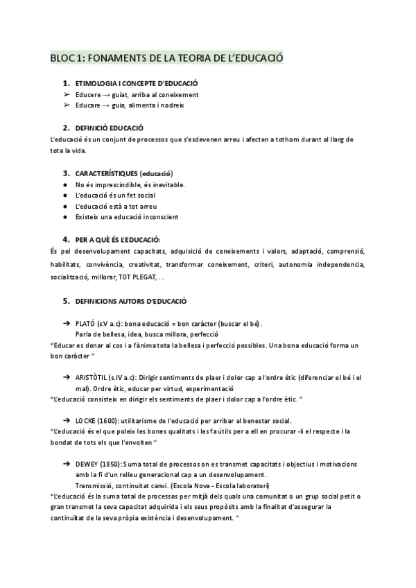 Apunts Bloc 1 de processos educatius d'educació primària - FONAMENTS DE LA TEORIA DE L'EDUCACIÓ