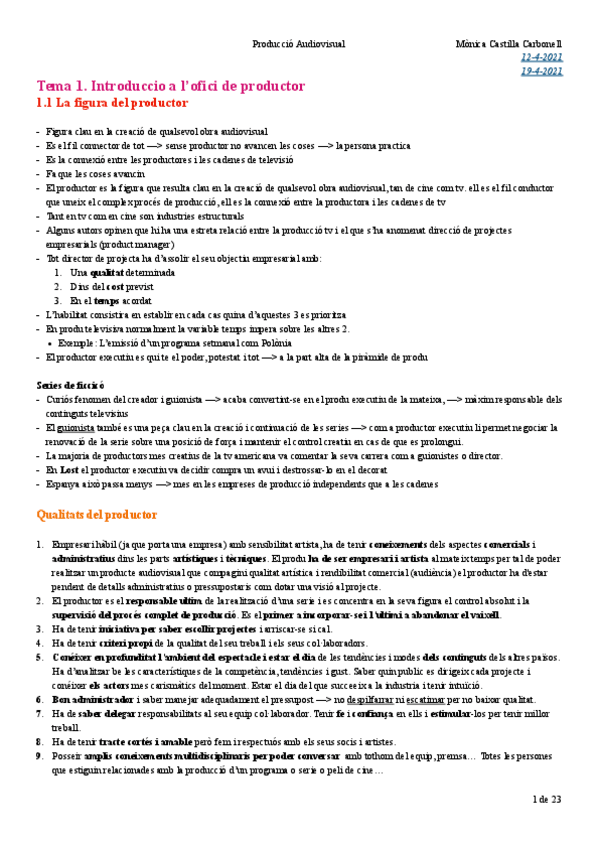 He publicado nuevos apuntes de 1º PRODUCCIÓ AUDIOVISUAL: Producción - Tema 1 y 2.pdf