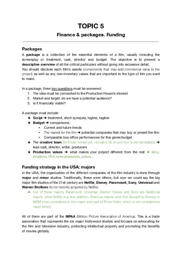 Apuntes de film production COMPLETOS en inglés por temas (2025)