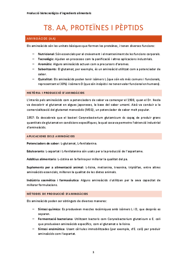 He publicado nuevos apuntes de 4º Producción Biotecnológica de Ingredientes Alimentarios: T8.-AA-PROTEINES-PEPTIDS.pdf