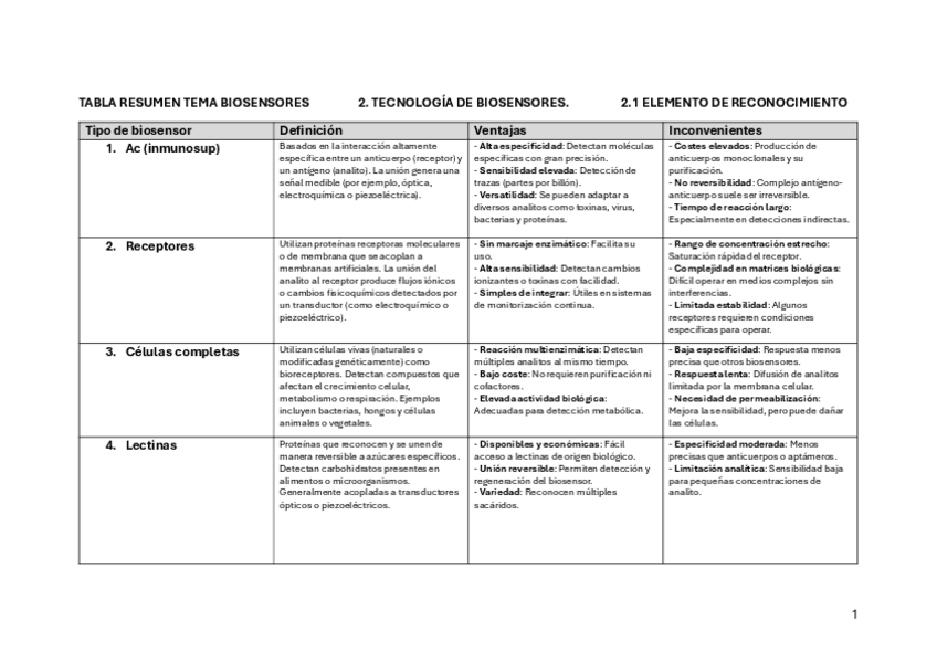 He publicado nuevos apuntes de 4º Producción Biotecnológica de Ingredientes Alimentarios: Tabla-resumen-biosensores.pdf