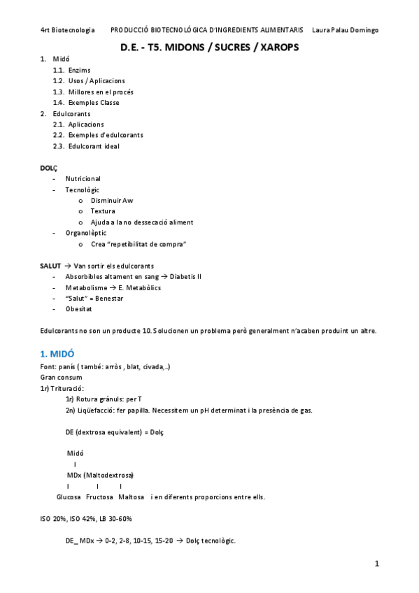 He publicado nuevos apuntes de 4º Producción Biotecnológica de Ingredientes Alimentarios: T5.-MIDONS-SUCRES-XAROPS.pdf