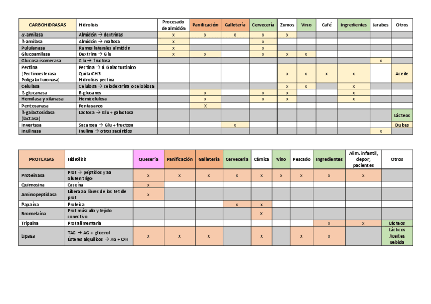 He publicado nuevos apuntes de 4º Producción Biotecnológica de Ingredientes Alimentarios: Enzimas-tabla-RECU.pdf