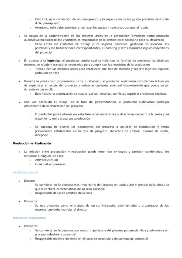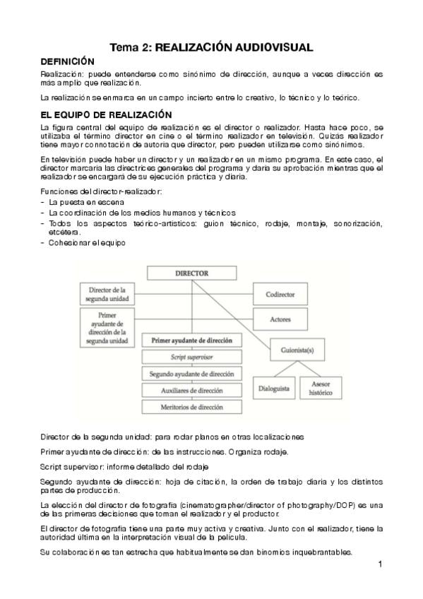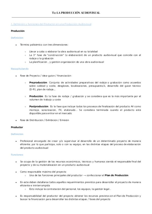 Apuntes Tema 2. Producción y realización en medios audiovisuales.