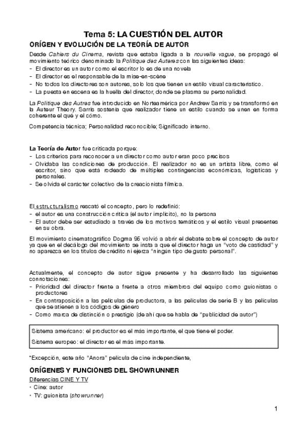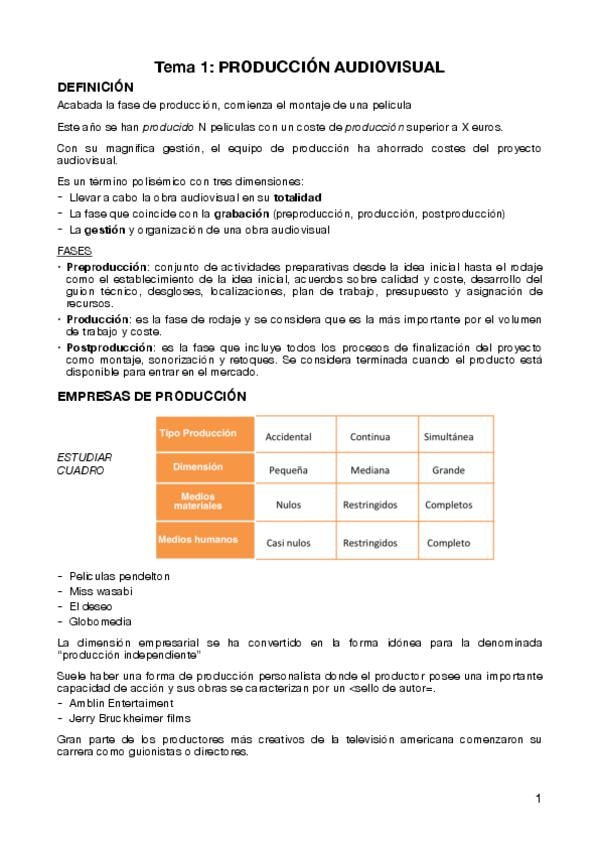 Apuntes Tema 1 parte 1. Producción y realización en medios audiovisuales.