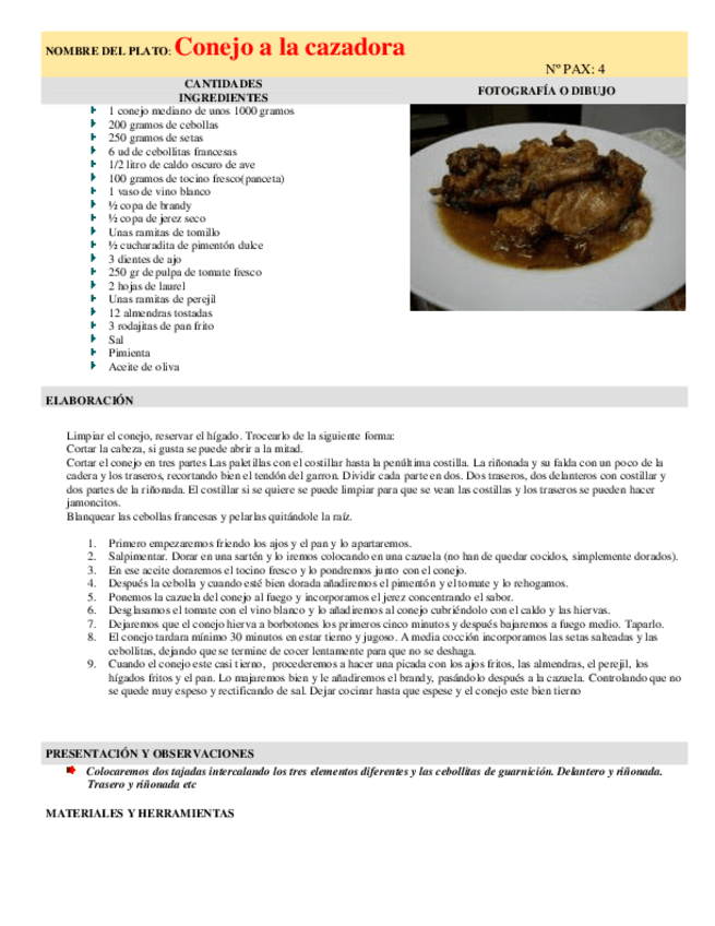 He publicado nuevos apuntes de Productos culinarios: Conejo-a-la-cazadora.pdf