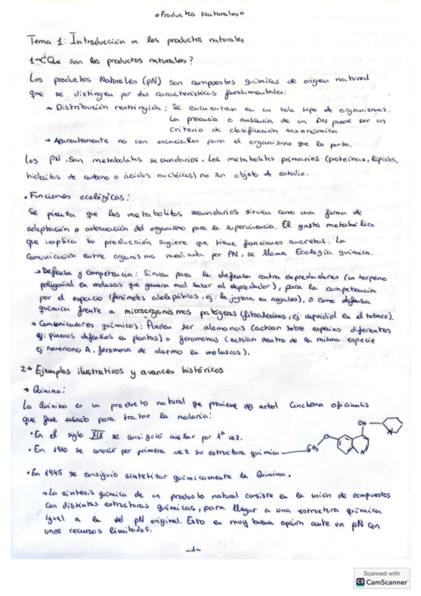 Apuntes de tema 1 de productos naturales que mezclan las diapositivas con los apuntes de clases dichos por el profesor