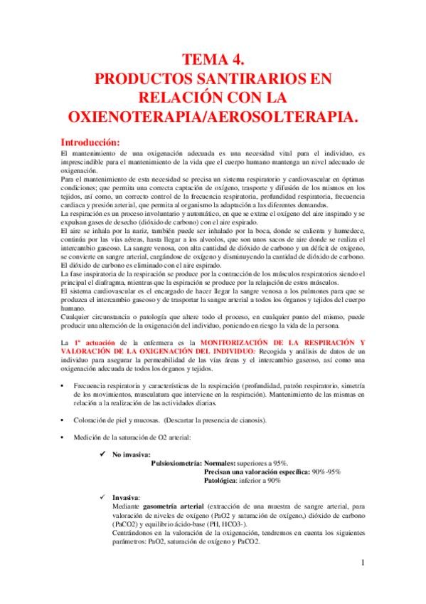 Apuntes - TEMA 4. PRODUCTOS SANITARIOS EN RELACIÓN CON LA OXIGENOTERPIA- AEROSOLTERAPIA. (Reparado).doc
