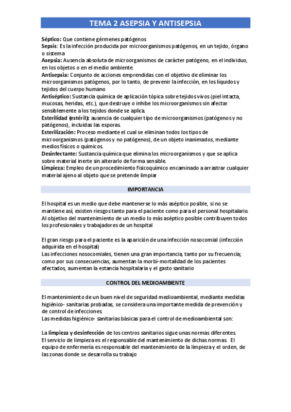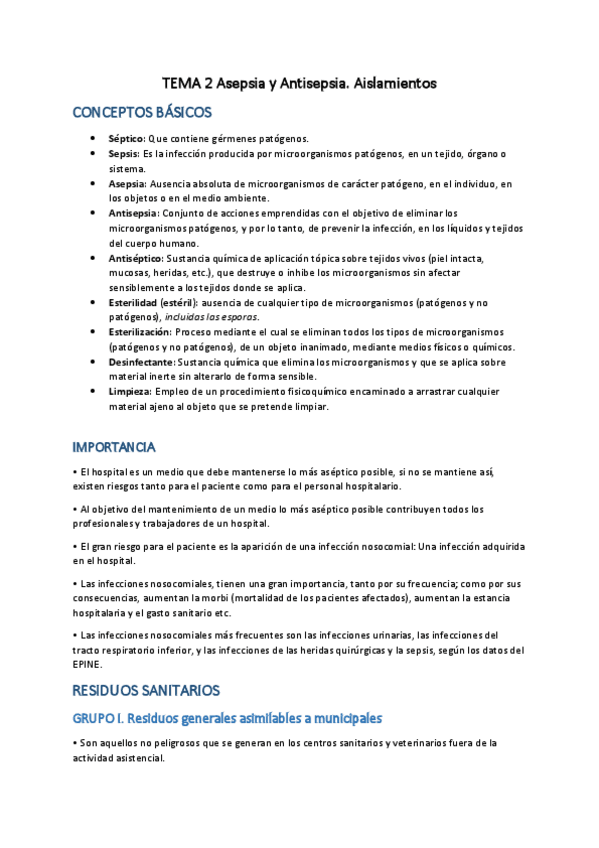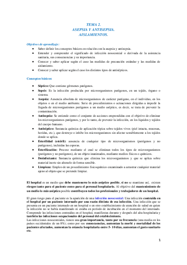 tema 2 - asepsia y antisepsia. aislamientos